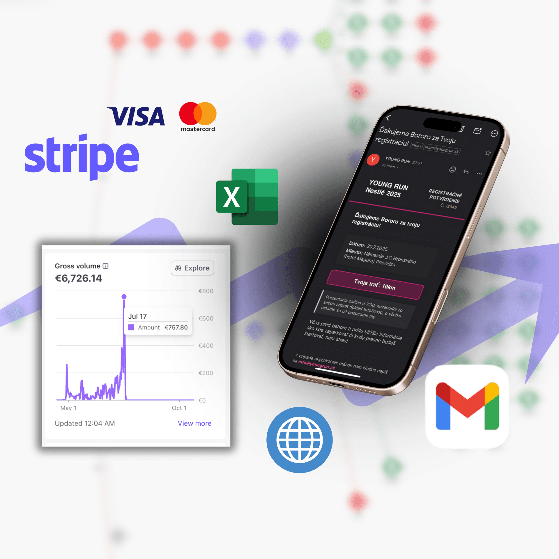 Vytvorenie celého platobného procesu od A po Z: spracovanie a uloženie dát zákazníkov, odosielanie emailov, spracovanie platieb, triedenie zákazníkov... toto všetko prebiehalo automaticky 24/7, bez nákladov.
